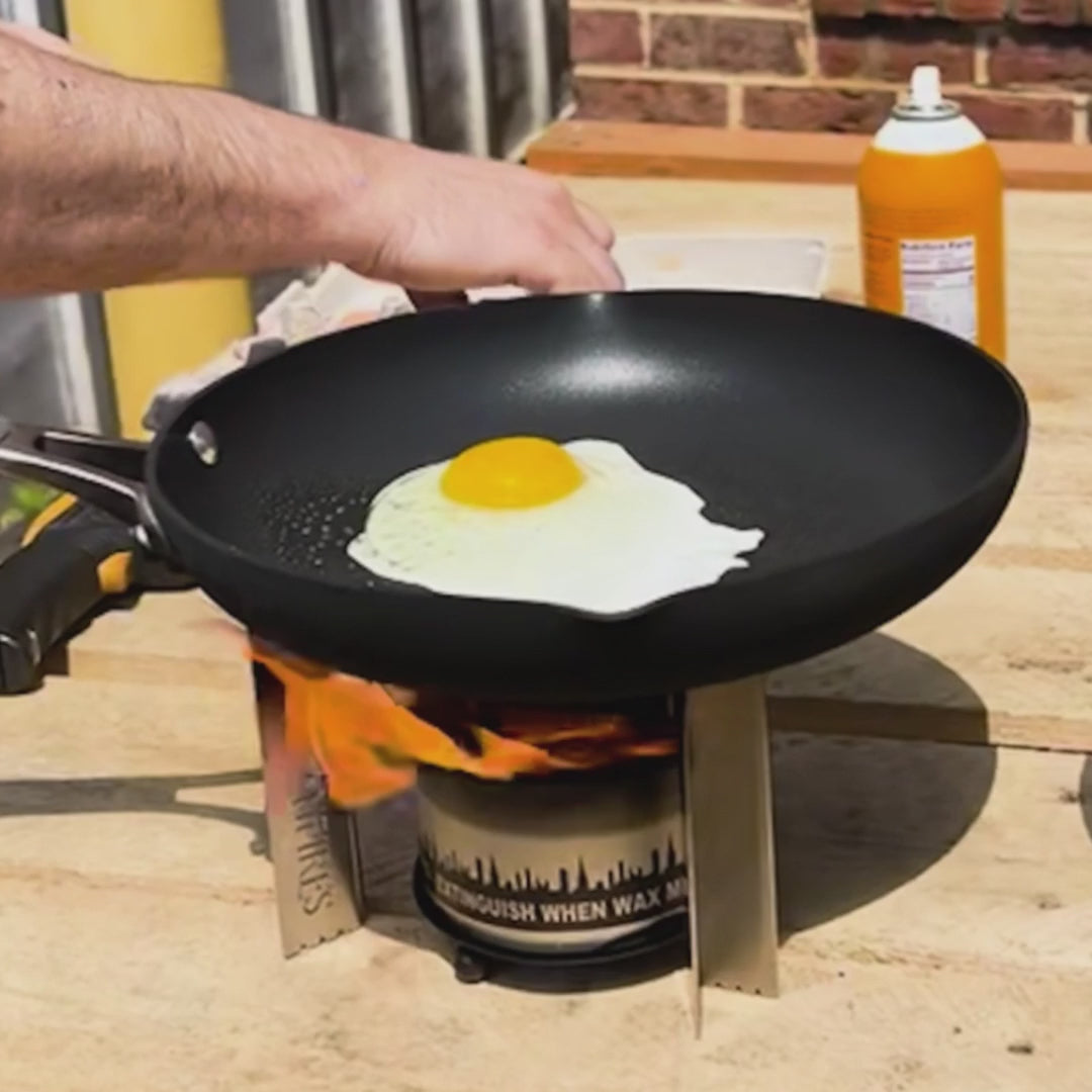 Introducing our NEW portable, easy-to-use, ultralight, stainless steel Collapsible Camp Stove, Cooker, and Trivet! Three tools in ONE! The multi-purpose cooking tripod is perfect for emergency situations, hiking, camping, hunting, backpacking, tailgating, and even the beach! This compact camping stove assembles in seconds, stores flat, and is very lightweight. Place the Collapsible Camp Stove over your City Bonfire and use it as a pot stand and cooker to heat food and boil water. Alternatively, flip it over and you can place the City Bonfire on the Collapsible Camp Stove and use it as a trivet to protect surfaces.